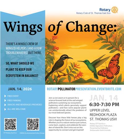 Thank you to everyone who attended the informative presentation yesterday on Jan 14 2026 at our STT Rotary East ECO club meeting space!